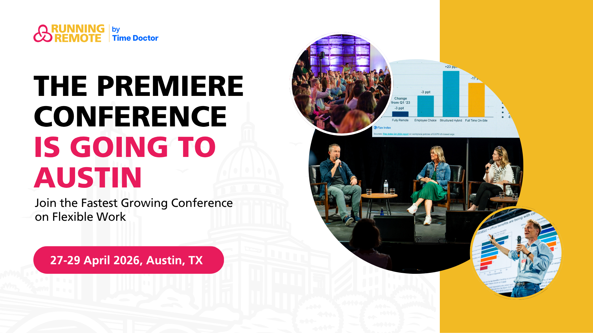Register for the Austin Leadership EXchange and receive a complimentary three-day pass to Running Remote 2026, the world's premier conference on remote and hybrid work leadership, happening April 27-29 right here in Austin. Thanks to our partners at HiBob and Running Remote, this ticket is yours free as part of your registration.
